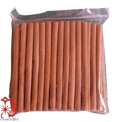 Pachetul contine 40 de moxe lungi cu un canal central pentru directionarea fumului. Fiecare baton/tigareta este realizata din moxa presata si uscata avand astfel un nivel al fumului emanat ceva mai redus decat moxa pura macinata.
